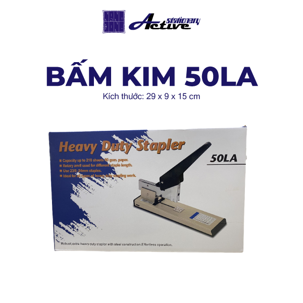 Bấm kim 50LA là dòng sản phẩm bấm kim công suất lớn, được thiết kế dành riêng cho nhu cầu bấm số lượng giấy dày, liên tục và ổn định trong môi trường văn phòng chuyên nghiệp. Với khả năng bấm lên đến 200 tờ giấy trong một thao tác, sản phẩm mang đến sự tiện lợi vượt trội, giảm thời gian sắp xếp hồ sơ và tối ưu hóa quy trình làm việc hàng ngày. Đây là lựa chọn lý tưởng cho những ai cần thiết bị bấm giấy mạnh mẽ, bền bỉ và đáng tin cậy.