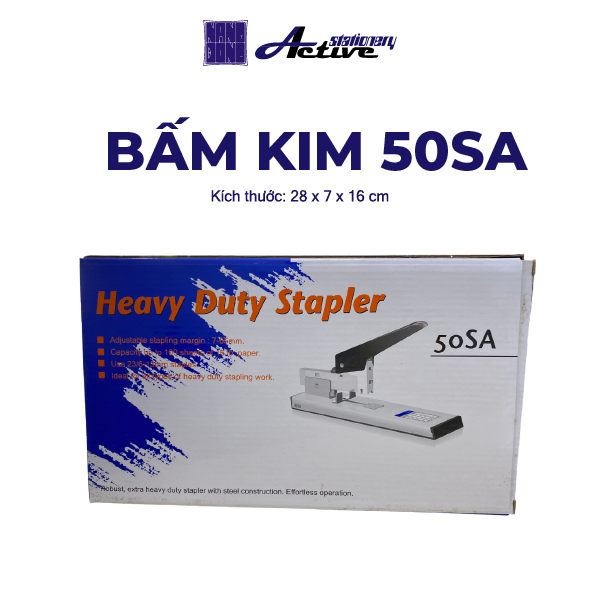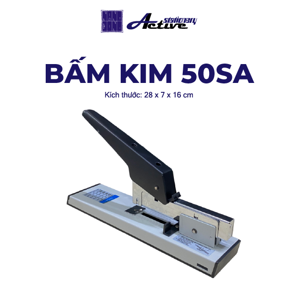 Bấm kim 50SA là phiên bản nhỏ gọn hơn so với mẫu 50LA, nhưng vẫn giữ được khả năng bấm mạnh, bền và ổn định. Đây là thiết bị văn phòng phù hợp cho nhu cầu đóng tài liệu nhiều, liên tục và cần độ chắc chắn cao. Nhờ thiết kế vừa tay, thao tác êm và lực bấm mạnh, sản phẩm trở thành lựa chọn phổ biến trong văn phòng, tiệm photo, trường học và cơ quan hành chính.